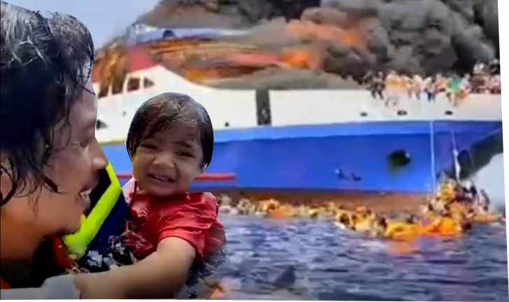Ia sempat mencari life jacket untuk sang anak, namun situasi yang sangat cepat dan penuh asap membuatnya langsung mengambil tindakan menyelamatkan diri dengan balita di pelukannya.