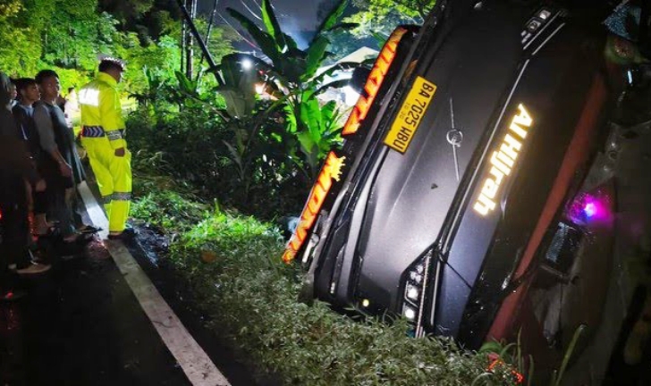 Bus yang mengangkut sejumlah penumpang itu dilaporkan keluar dari badan jalan dan masuk ke jurang di jalur lintas yang dikenal memiliki kontur menurun serta berkelok di kawasan perbukitan.