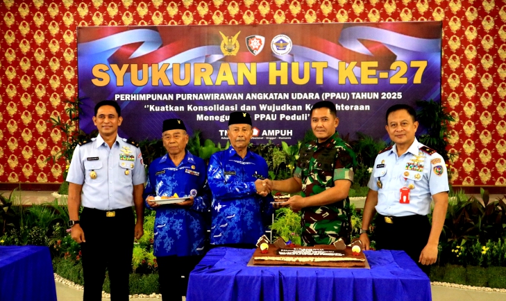 TOBAGOES.COM/Makassar – Komandan Lanud Sultan Hasanuddin Marsma TNI Arifaini Nur Dwiyanto, M.Han., didampingi Ketua Pia Ardhya Garini Cabang 7 D/II Lanud Sultan Hasanuddin, Ny Betty Arifaini Nur Dwiyanto, menghadiri acara syukuran Hari Ulang Tahun (HUT) Perhimpunan Purnawirawan Angkatan Udara (PPAU), di Gedung Serba Guna Suryadi Suryadarma, Markas Komando Daerah Angkatan Udara (Kodau) II, Makassar, Rabu (27/8/2025).