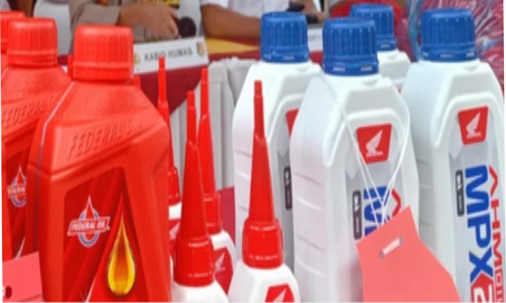 Sejumlah kemasan oli bermerek terkenal ditemukan dalam kondisi masih tersegel, namun dengan kualitas isi yang tidak sesuai standar. Diduga, pelaku membeli kemasan bekas, lalu mengisinya kembali dengan oli berkualitas rendah atau bahkan minyak bekas yang dimodifikasi.