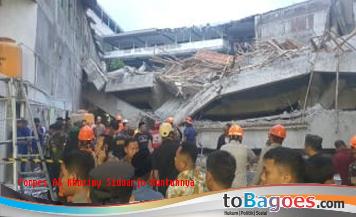 TOBAGOES.COM/Sidoarjo – Tragedi runtuhnya bangunan Pondok Pesantren (Ponpes) Al Khoziny di Buduran, Sidoarjo, Jawa Timur, terus menyisakan duka mendalam. Hingga Minggu (5/10/2025) pukul 21.00 WIB, tim gabungan kembali mengevakuasi tujuh kantong jenazah dari reruntuhan bangunan, sehingga total korban meninggal dunia mencapai 52 orang, termasuk lima bagian tubuh.